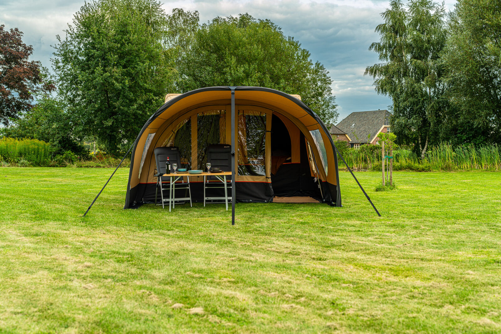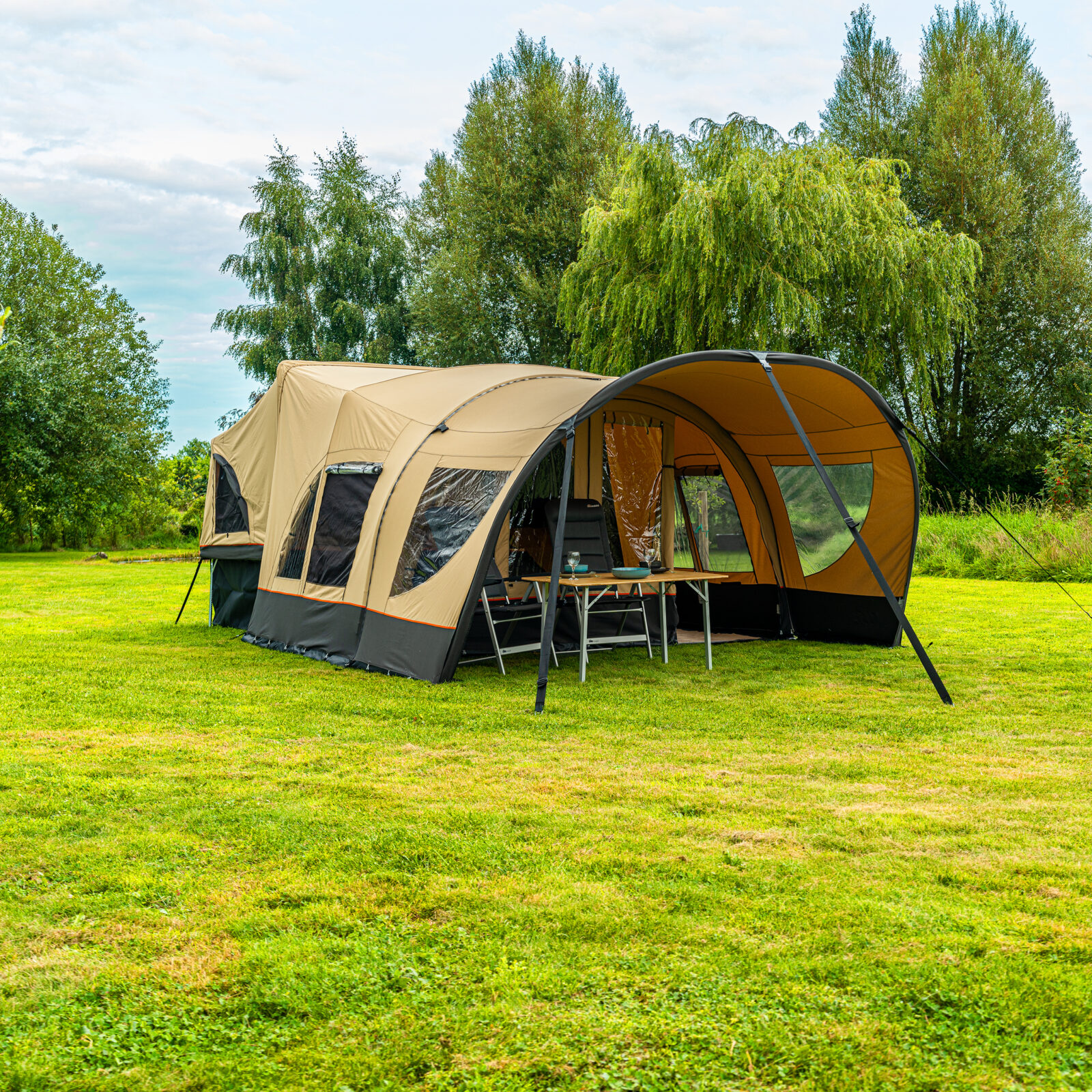 | Afmetingen | Woongedeelte van 250 x 385 cm, optioneel te voorzien van een luifel (200 x 385cm) |