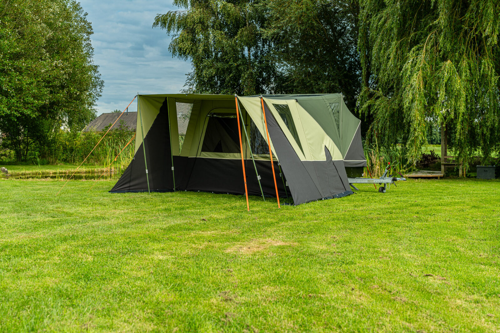| Afmetingen | Woongedeelte van 220 x 290/361 cm, standaard voorzien van een luifel (120 cm) en uit te breiden met extra luifel (80 cm) |